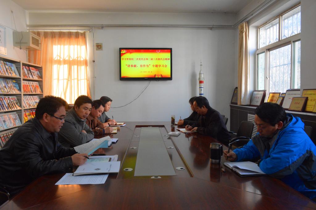 12月1日,后备军官教育学院党委在学院会议室召开学习贯彻我校二次党代会和二届三次教代会精神为主题的“讲奉献、有作为”专题学习会,学院全体教职工党员参会,会议由院党委书记尹建平主持。