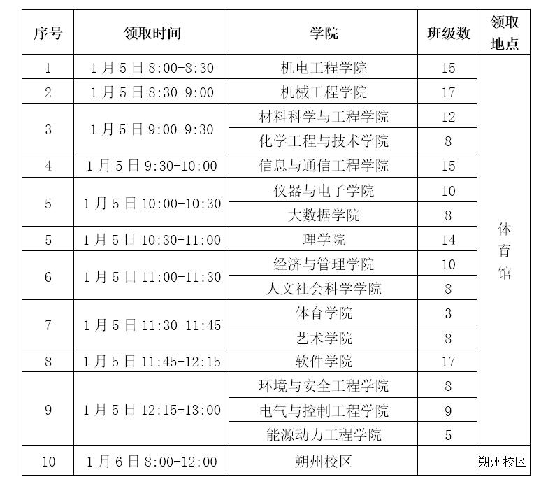 发放地点:体育馆(羽毛球馆)\朔州校区