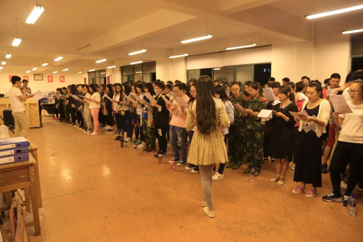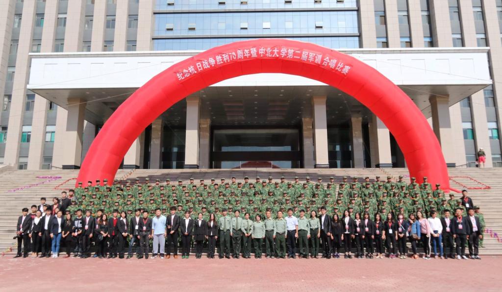 9 月26日 上午,由武装部与艺术学院共同举办的纪念抗日战争胜利70周年暨中北大学第二届军训合唱比赛在行知广场举行。军训团成员担任评委。各营合唱代表队参加比赛歌唱中北、歌唱祖国。我院负责配合军教院组织本次比赛及各个学院的合唱指导,同时,我院新生发扬刻苦拼搏,勇争上游的精神,利用军训之余的时间,认真排练,最后获得全校第一的优秀成绩。本次军歌比赛,极大鼓舞了全院新生的士气,为军训的顺利举行奠定了基础。