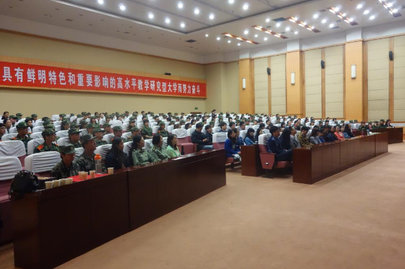 2015年9月14日上午在图书馆五层学术报告厅召开学院2015级新生开学典礼及军训动员大会,全体指导员、军训教官、参训学员参加了此次大会。通过大会教育学生要学会吃苦耐劳、坚持不懈,同时要尊重教官,严守纪律,听从指挥,发扬军人风格,把良好的习惯和作风带入以后的学习生活中。