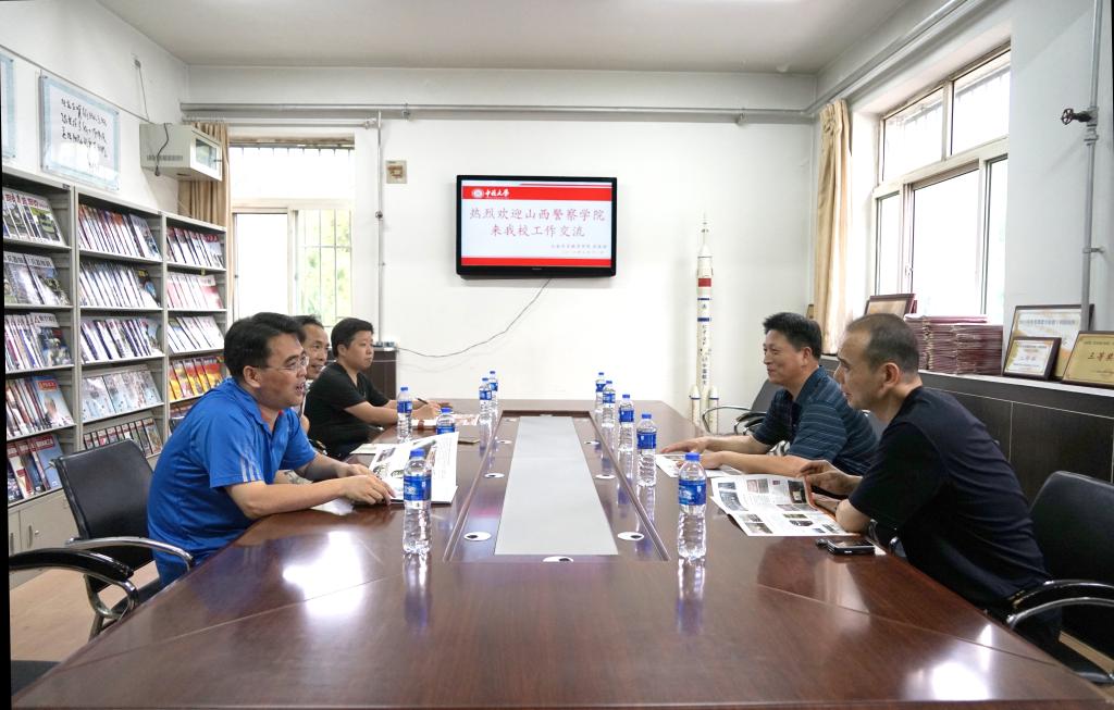 7月11日下午,山西警察学院有关部门负责人来我校就学生军事训练方面进行工作交流。武装部部长尹建平、副部长申玉明参加工作交流会。