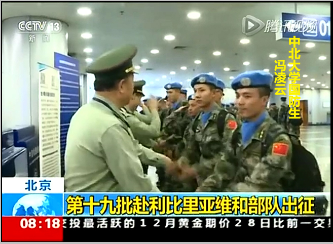 9月27日晚上20时,我国第19批赴利比里亚维和部队124名官兵从北京国际机场出发,飞赴利比里亚首都蒙罗维亚任务区,与第18批赴利比里亚维和部队进行轮换,开始执行长达12个月的维和行动。我校2015届毕业国防生、52区队学员冯凌云因其过硬的军政素质,经过层层选拔和集训考核,成为其中一名光荣的维和战士。