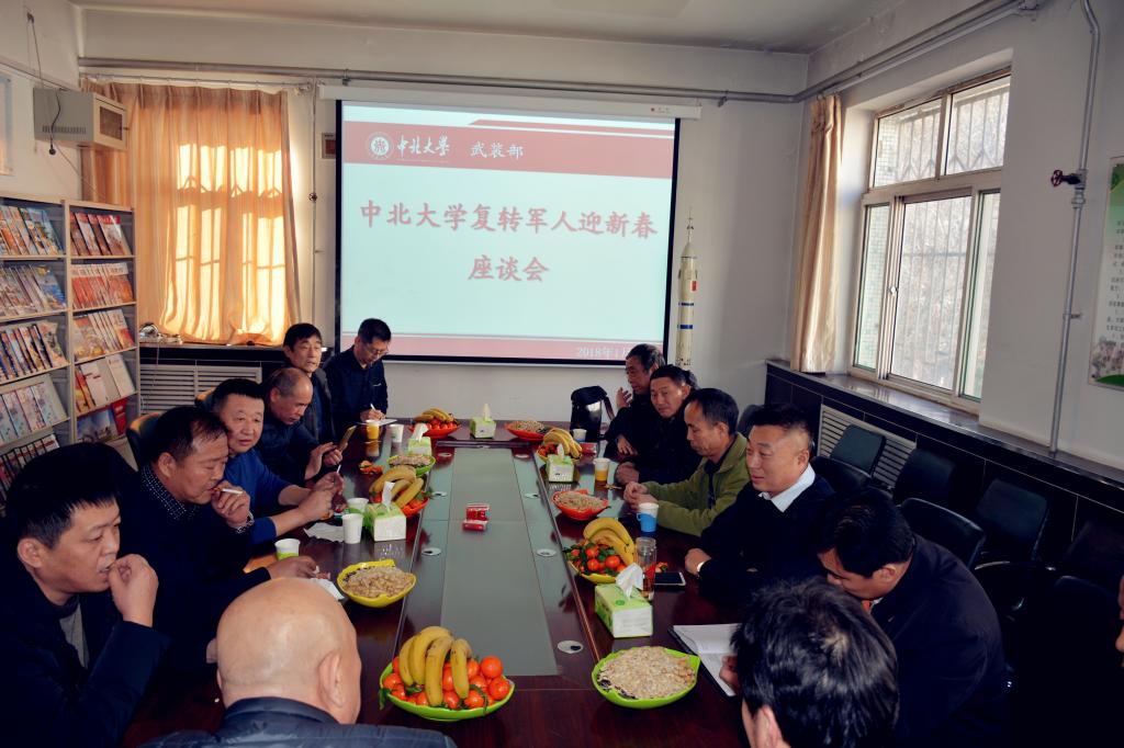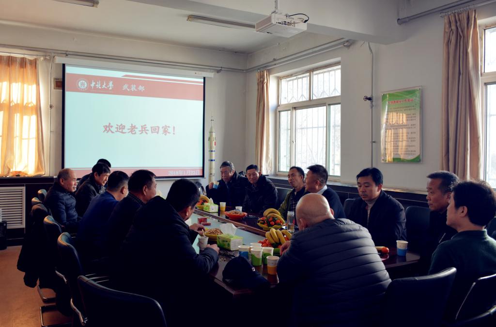 2018年1月23日下午,武装部举行我校退伍军人代表茶话会,参加人员均为不同时期退役转业到我校的复转军人。茶话会由武装部副部长黄新恩同志主持。