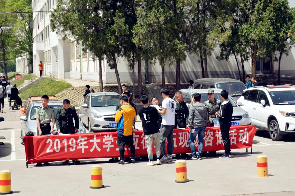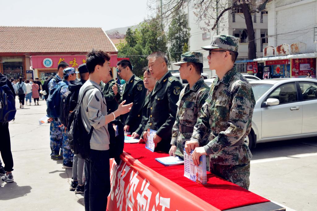 为深入推进我校大学生征兵工作,加强征兵政策宣传,鼓励广大学生积极投身绿色军营,4月30日中午,我校武装部在龙泉餐厅前广场开展大学生征兵宣传咨询活动。