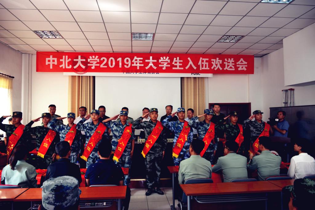 9月9日,我校2019年大学生入伍欢送会在科艺苑学术报告厅举行。校党委书记李忠人教授、尖草坪区委常委、武装部政委王国权上校出席大会,相关职能部门和学院负责人参加活动,并为今年应征入伍的62名大学生佩戴了“光荣入伍”的绶带和红花。会议由武装部部长药宏亮主持。