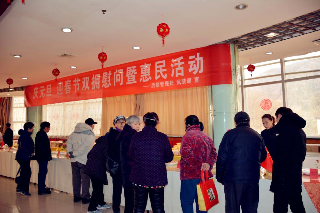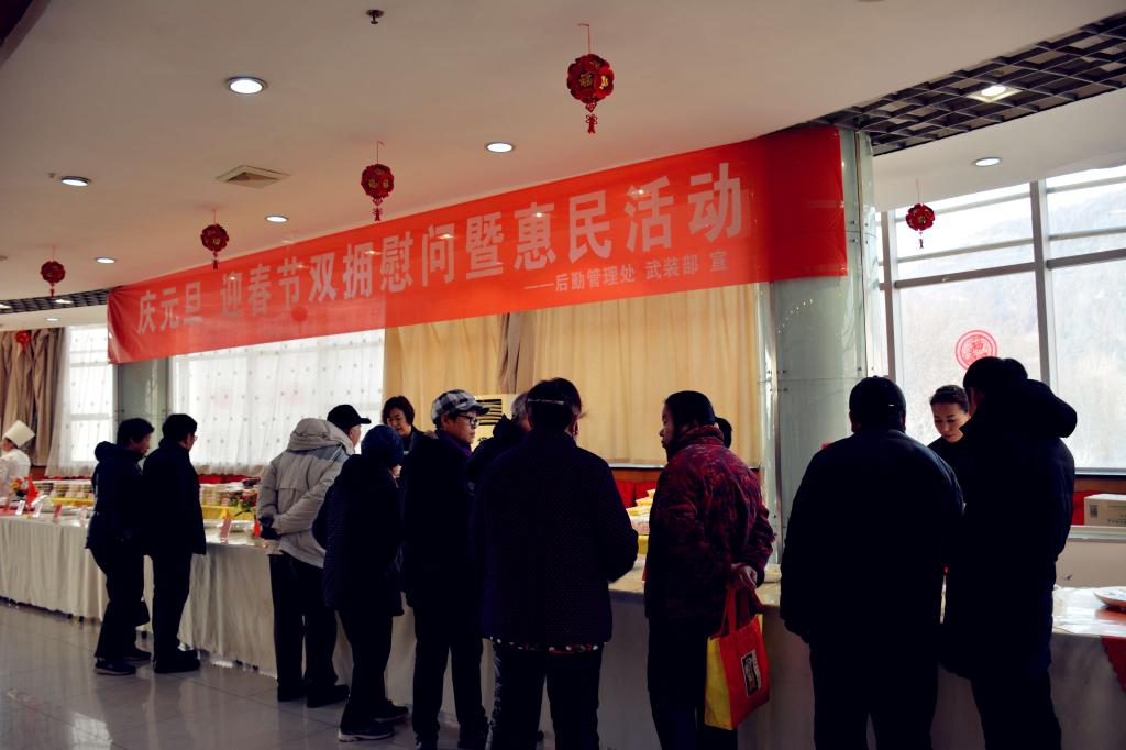 在2020年元旦、春节来临之际,为继续发扬我校“双拥”工作的优良传统,为全体教职员工生活提供优质的服务和强有力的保障,让拥军优属工作落到实处,后勤管理处、武装部于2020年1月3日开始开展了“2020年元旦春节双拥慰问暨惠民活动”。后勤管理处物流服务中心、餐饮服务中心为此次活动准备了熟食、半成品、面点等各类食品材料,供全校教职工及复转军人和军烈属购买。