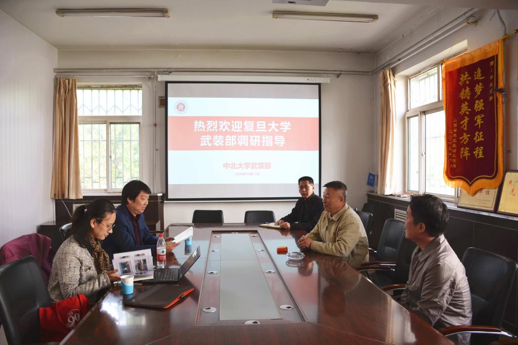 10月15日上午,复旦大学武装部副部长黄荣国等一行2人来我校调研和交流高校征兵、学生军训、军事理论教学工作。武装部药宏亮部长热情欢迎并与来宾座谈。