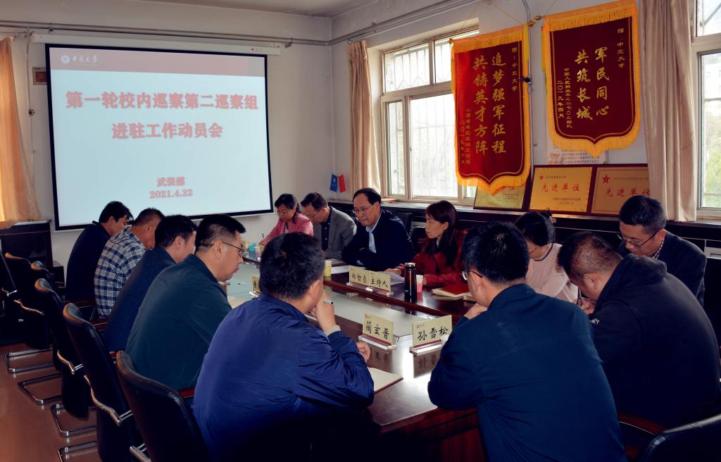 4月22日,根据学校党委的统一部署,第一轮校内巡察第二巡察组在武装部会议室召开进驻武装部巡察动员会。学校巡察工作领导小组常务副组长、纪委书记贾维河出席会议并作了动员讲话,第二巡察组全体成员、武装部的全体教职工参加了会议。会议由校纪委副书记、巡察工作办公室主任郑智贞同志主持。