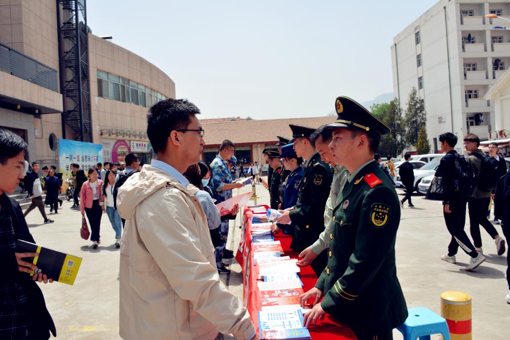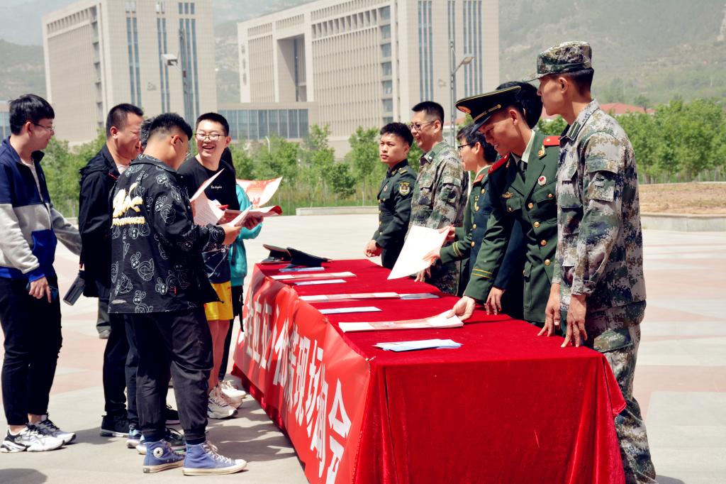 今年是中央军委实施“一年两征”的第一年。根据中央军委对大学生入伍政策的新变化,鼓励大学生积极参军入伍,不断提升兵源素质,为人民军队输送高素质人才,推动国防和军队现代化建设,5月8日上午,武装部在东西区餐厅前开展征兵宣传活动。