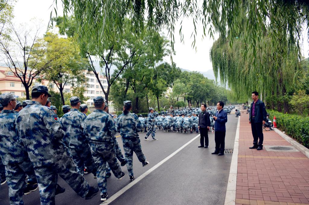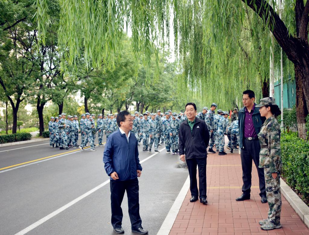 9月24日上午,校党委副书记雷锋斌在武装部负责同志陪同下,深入训练现场,检查指导2021级新生军训工作。
