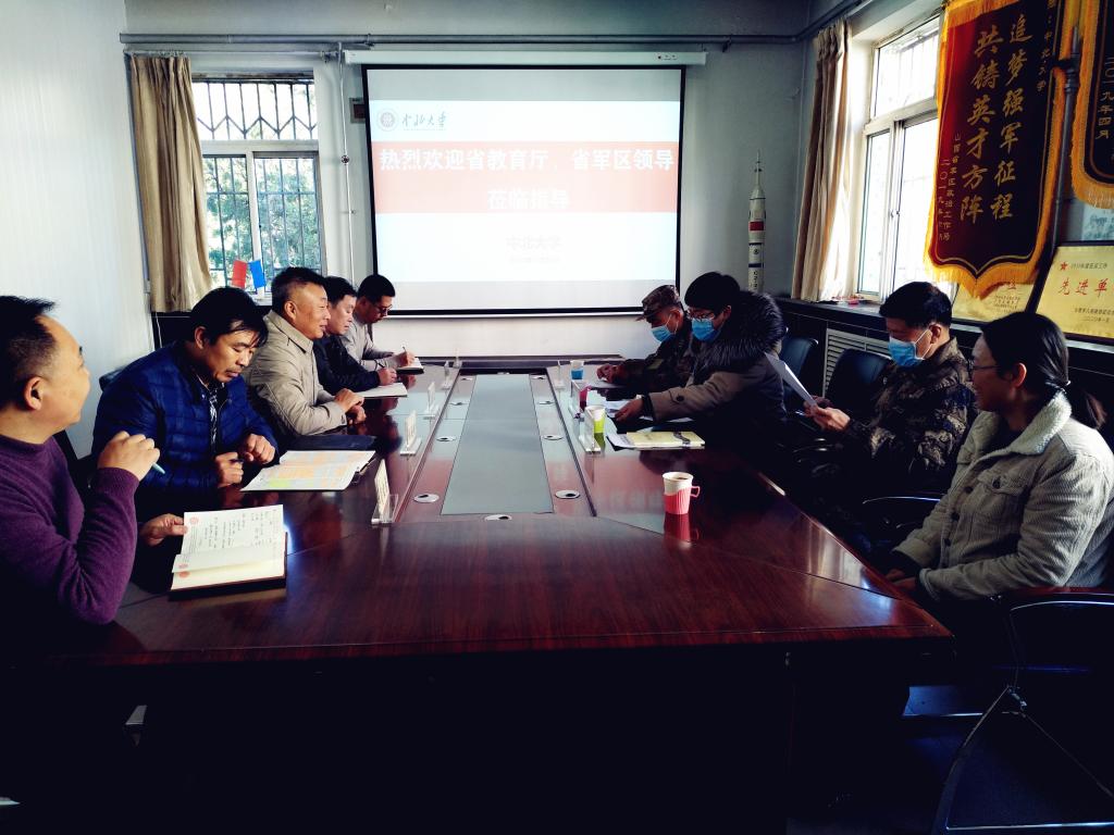 11月10日,省教育厅体卫处周洁副处长、省军区战备建设局杨慧上校、省国防教育办张培荣主任一行到我校调研指导军训协同创新基地的筹建工作。