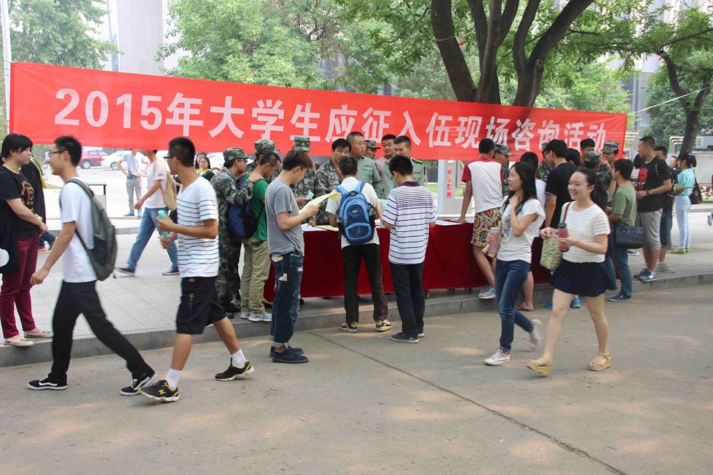 为了进一步做好2015年大学生应征入伍工作,5月28日上午,校武装部联合尖草坪区武装部在中央大道开展了2015年大学生应征入伍现场咨询活动。
