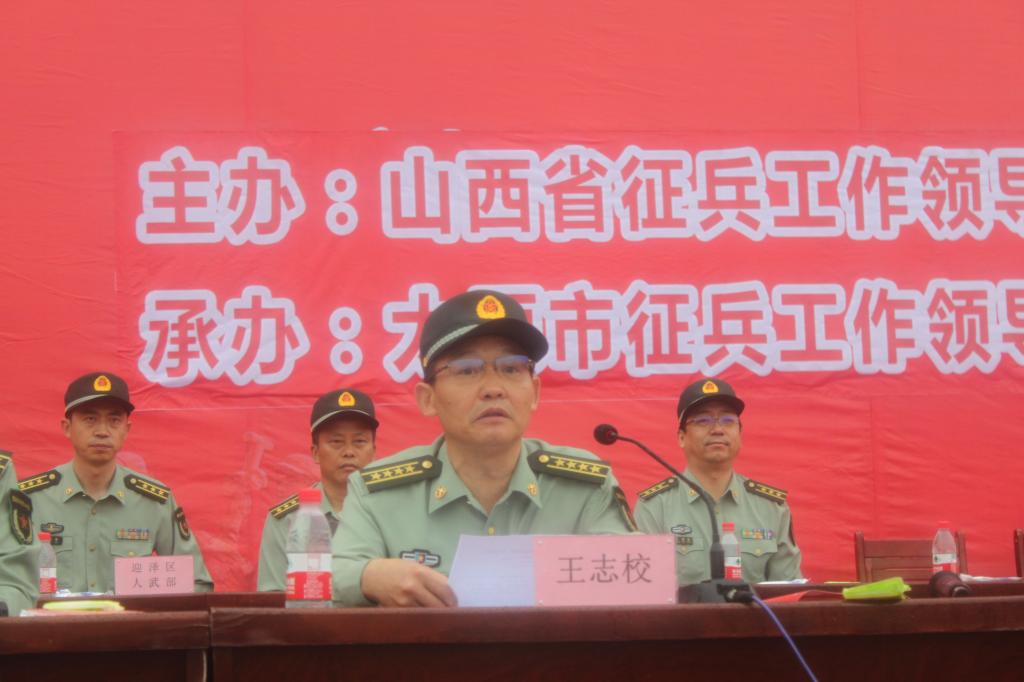 太原警备区司令员王志校大校作征兵政策宣讲。他从征兵征集和优抚安置、部队发展前景和教育优惠政策三方面进行了介绍。