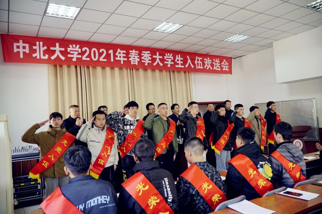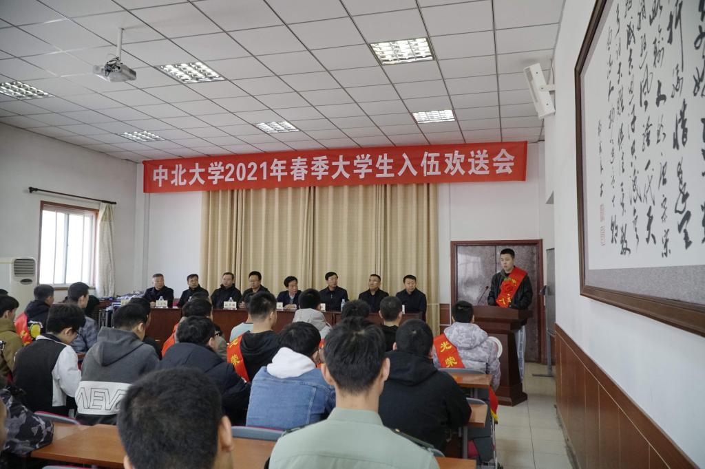 欢送会上,2021年入伍新兵代表赵家伟同学表达了将珍惜身穿戎装的机会,以不负时代不负青春的强烈使命感,自觉培育和践行社会主义核心价值观、当代军人核心价值观,争做钢铁长城一块砖,愿守万里河山一寸土,努力成为让党和人民放心的优秀军人,将青春和汗水挥洒在实现强国强军梦的伟大实践之中的意愿;参加过2019年国庆阅兵的退伍大学生代表裴琦睿同学分享了自己的军旅体会:当兵无悔,青春无畏!在军旅生涯中要锐意进取,顽强拼搏。在人生路上要扬帆起航,乘风破浪!