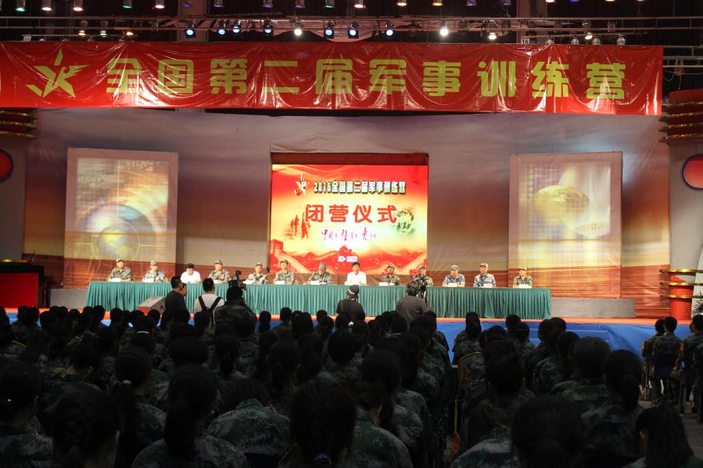 在中国人民抗日战争暨世界反法西斯战争胜利70周年之际,由教育部、中国人民解放军总参谋部主办,上海市教育委员会、上海警备区司令部承办的2015年全国第二届军事训练营于8月1日-10日在上海市青少年校外活动营地--东方绿舟成功举行。来自全国各省、市、自治区及新疆生产建设兵团共32支代表队的370多名大、中学生参加了本届训练营。教育部副部长郝平、上海市副市长翁铁慧,总参动员部部长牟明滨少将、教育部体卫艺司司长王登峰等有关领导和嘉宾分别出席了8月1日的开营仪式和8月10日的闭营仪式。
