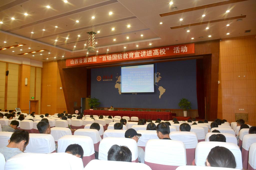 我校武装部联合山西省国防教育宣讲团,于5月25日上午在我校图书馆五层学术厅成功举办了“第四届百场国防教育宣讲进高校”活动。讲座由武装部申玉明副部长主持,师生代表近三百余人聆听了讲座。