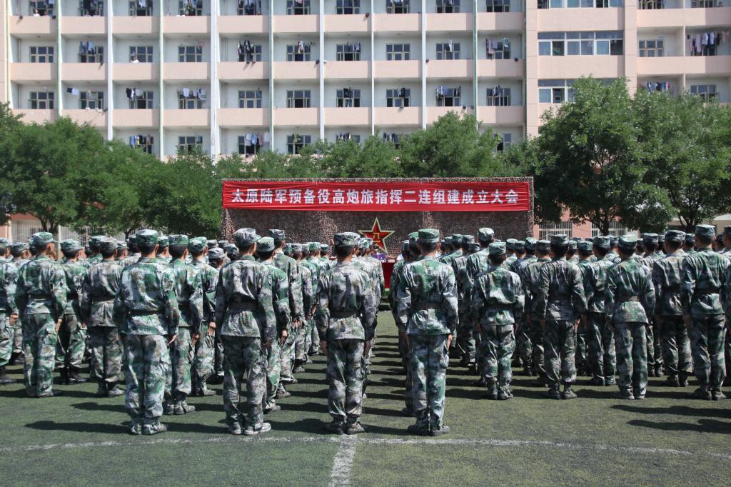为进一步彰显我校国防军工特色,结合教育部提出的“突出抓好涉及军事科技研究和军事通用专业的院校学生军训,有重点地培养储备预备役军官,走出在高校组建并开展预备役部队训练的路子”的新要求,经上级批准,在我校后备军官教育学院编组太原某预备役高炮旅指挥二连,组建成立大会于6月22日上午在我校西区体育场举行。省军区政治部主任傅永国、省军区政治部干部处处长关惠强和太原某预备役高炮旅旅长蒋国华、政治委员宋磊、参谋长董海麟,及我校党委书记李忠人、校长刘有智、副校长薛智出席大会。这是中部战区太原某预备役高炮旅在山西省重点高校组建成立的首支预备役建制连队。